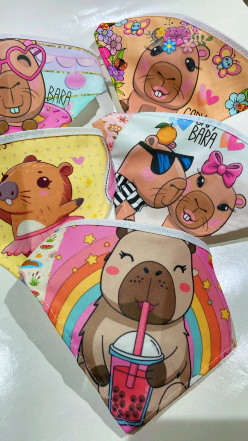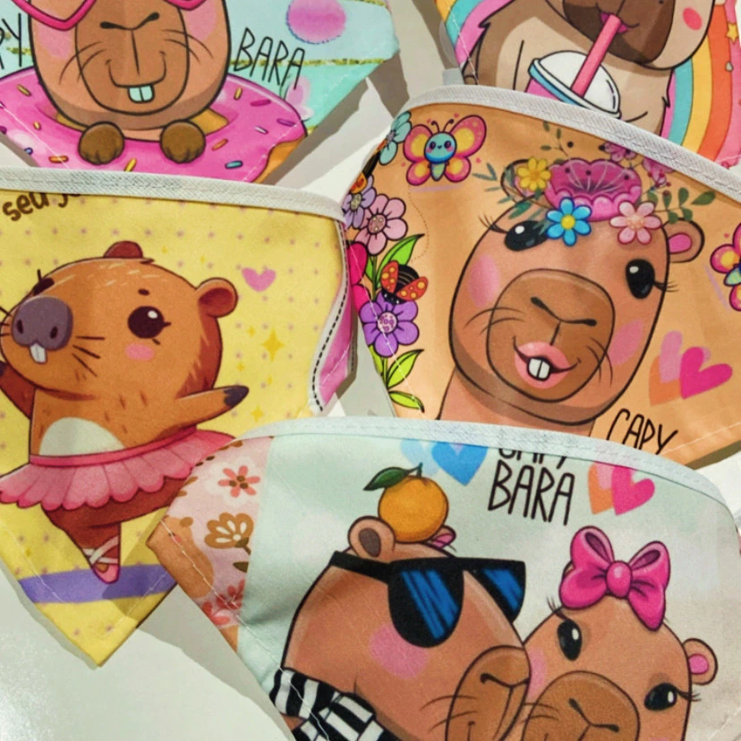 pacote com 10 unidades bandanas capivaras nas estampas da foto